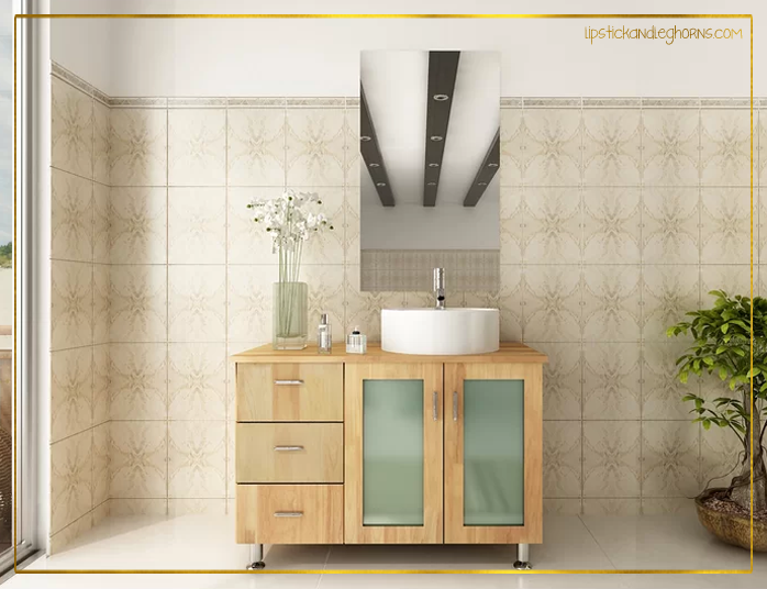 For me, a vessel sink is a must. I also need a large vanity with lots of storage. I really like this one from Ebern Designs. I’m not sure how the green glass would mesh with my bathtub, but it should be fairly easy to switch if the colors clash. If it does work, it would be a nice way to compliment the green of the bathtub without going overboard.